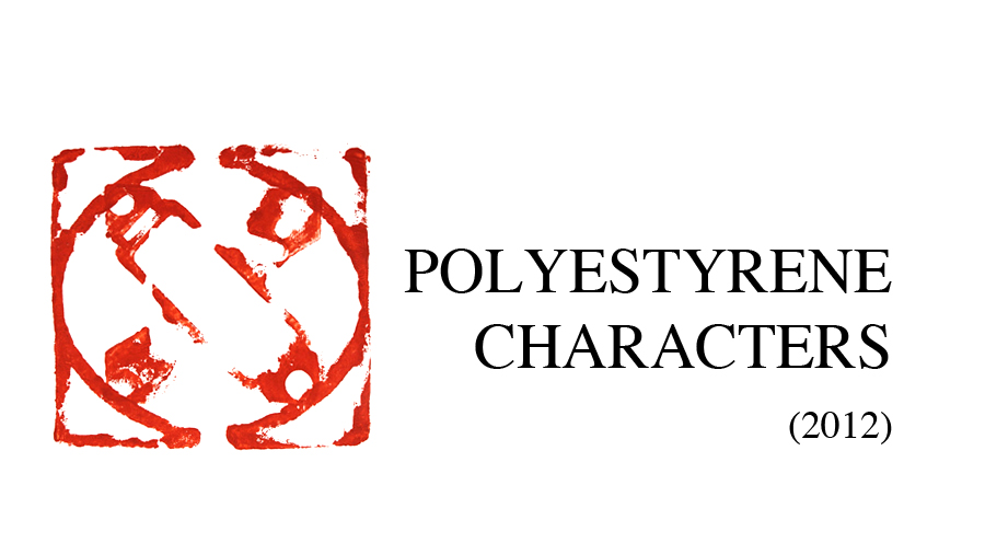 En una de mis visitas regulares a las recicladoras, me encontré muchos empaques de poliestireno para aparatos electrónicos y me di cuenta de que sus distintas siluetas son muy parecidas a los caracteres de los sellos chinos y japoneses. Esta impresión se cocinó estando semi-dormido y en cuanto desperté empecé a bocetar.